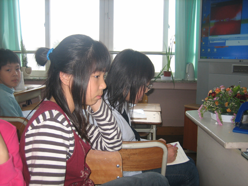 진지하게 노래를 듣는 영은이. 항상 즐거운 영은이에게 의외인 표정 |