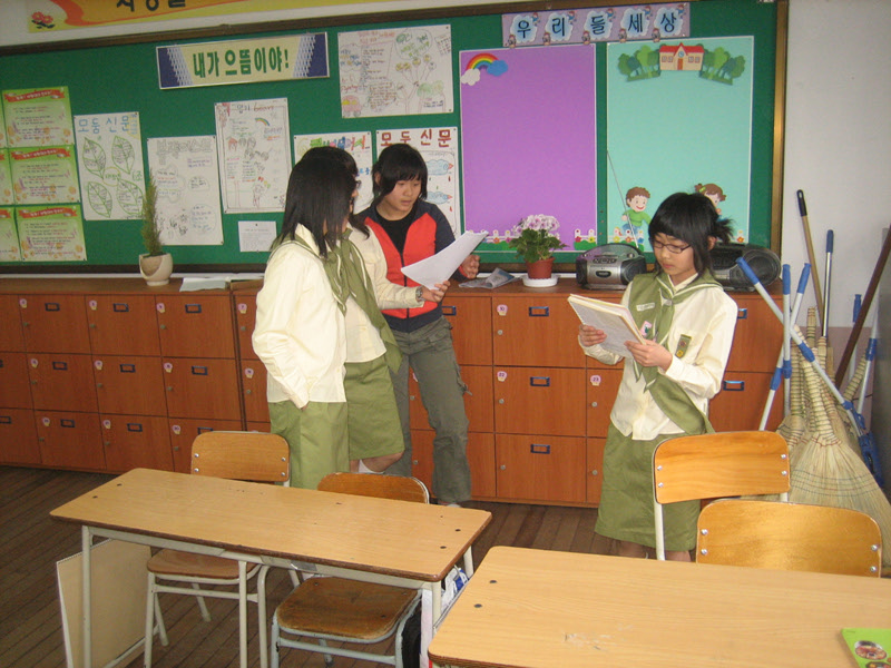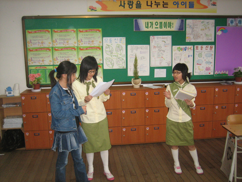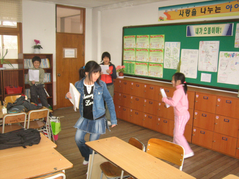4월 둘째주부터는 대본 리딩을 하면서 대본 수정 작업을 하였다. 핀마이크 갯수를 생각해서 하나의 극에 출연하는 주요 배역을 4명으로 수정했다. 만약 핀마이크 제한을 받지 않으면 더 많은 배역을 만들 수 있는데 아쉽기 그지없다. 우리학교 기간제 교사로 온 영률이가 다음주면 기간이 다 한다. 그 동안 대본 작업 파트, 연기 훈련 파트, 악보 파트로 나눠서 활동을 했는데 대본 작업 파트는 대본이 완성이 되어서 그 역할이 다 했다. 그러나 다음주부터 댄스 파트가 시작되기 때문에 여전히 세파트로 나눠서 활동해야 한다. 다시 혼자 해야 되는 상황이 온 것이다. 이럴 때를 대비해서 조연출을 뽑을 필요가 있어서 음향을 맡은 민욱이를 조연출로 임명했다. 민욱이에게 매일 연습을 같이 하면서 조연출을 하라고 말하니 흔쾌히 승락한다. 한편 스텝 부분에서는 큰 고민이 있었다. 바로 무대이다. 조명이나 음향은 어느정도 구상이 되었지만 뮤지컬 무대는 만들어 본 적이 없어서 어떻게 해야 할지 막막하기만 했다. 작년처럼 무대에 신경을 안 쓰면 걱정이 없겠지만 올해 뮤지컬 만큼은 제대로 만들고 싶기에 무대도 제대로 만들고 싶었다. 문제는 이곳 양양에서 뮤지컬 무대에 관해 누구와 상의를 하는 것은 꿈과 같은 일이라는 것.. 처음 뮤지컬을 만들때 부터 과연 무대를 어떻게 구성할지 고민을 하고 있었지만 별 다른 대책이 없었다. 지난 연극부 활동을 돌아보며 홈페이지에 기록된 교육 연극 2005 '백설공주를 사랑한 난장이'편을 펼쳐보았다. 처음 연극부를 만들면서 좌충우돌 하던 일들이 주마등처럼 스쳐갔다. 그때는 서울 국립극장까지 가서 공연을 했었는데.. 피식 웃음을 지으며 사진을 살펴 볼 즈음 무릎을 탁 쳤다. 맞다.. 그 어디서도 보기 힘든 든든한 무대 조언자를 이미 알고 있었던 것이다. 연극부가 국립극장에게 공연을 할 때 국립극장 무대 감독님이 바로 양양초등학교 출신이라면서 우리를 무척 반기셨다. 덕분에 나와 아이들은 국립극장 전체를 둘러볼 수 있었다. 그 분이라면 내가 가지고 있는 고민을 풀어 주실 수 있을 것 같았다. 염치불문하고 전화를 드리니 흔쾌히 도와주신다고 하신다. 감사합니다. 이성현 감독님. 무대를 제작하면서 국내 최고의 전문가의 조언을 받을 수 있게 되었다. 뮤지컬 일기를 쓰면서 느끼지만 뮤지컬 만드는 것이 참 재미있다. 흩어져 있는 조각들을 하나하나 끼워맞추는 재미라고 할까? 무엇보다 내가 필요할 때마다 절묘하게 등장하는 조력자들이 있기에 더욱 즐겁다. 처음에는 안개처럼 느껴졌던 뮤지컬 만들기가 이제 서서히 실체를 들어내고 있다.
