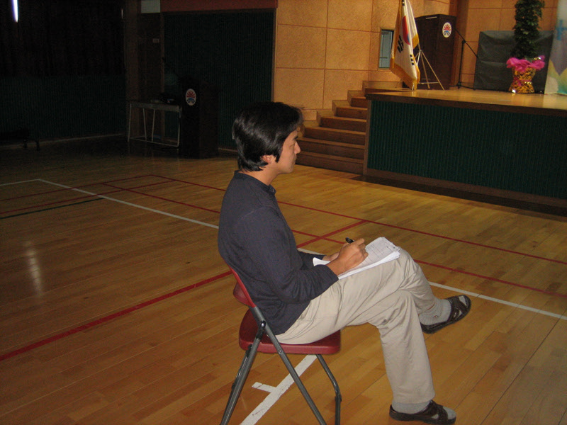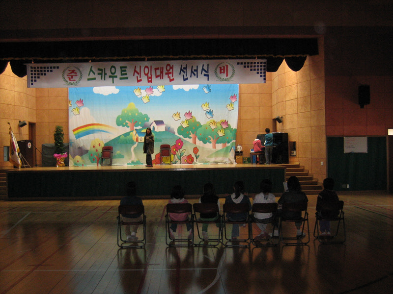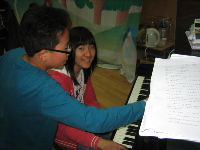 월요일에 쉬는 아정이가 오디션을 돕는다고 해서 피아노 반주가 되는 체육관으로 옮겼다. |
