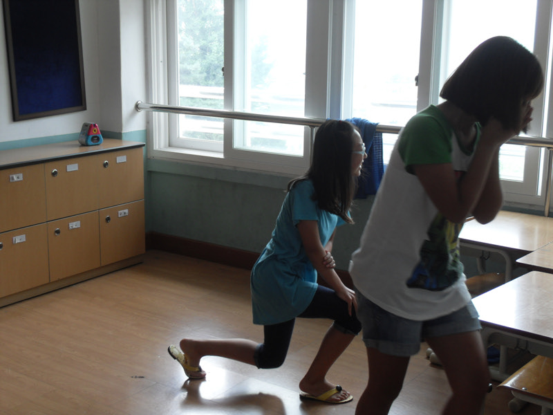 연습 시작. 처음에는 선녀였다가 팥쥐로 배역을 바꾼 아정이. 꽤 잘한다. |