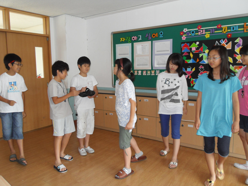 방학이 다가오자 다행히 태국 소요 사태는 진정이 되었다. 진정이 되기는 했지만 여전히 불안한 상황이었다. 5월경 부산에서 국제교육협력단 교사 워크샵이 있을 때 우리팀인 두 남자 선생님과 함께 과연 이 프로젝트를 할 것인지 하지 않을것인지에 대한 토론이 있었다. '일단 시도해 봅시다. 만약 끝에 결렬이 된다면 애들 데리고 태국 여행간다는 생각으로 갑시다.' 내 한마디에 프로젝트를 추진하기로 결정했다. 인원은 원주 6명, 대구 2명, 전북 3명으로 잡았다. 태국 방문 날짜는 8월 14일부터 18일로 정했다. 개학이 18일이라 부담이 컸는데 학교 사정상 개학이 21일로 미뤄졌다. 나에게는 행운과 같은 징조이다. 방학때 뮤지컬부를 매일 연습시키기 위해선 기존의 뮤지컬부로는 할 수가 없었다. 다들 열심히 한다고 하지만 한두명을 중심으로 모인 그룹이기 때문에 자칫하면 한명이 나가면서 딸려 나가게 되고, 그러면 모든 게 와해되기 때문이다. 결국 5.6학년 학생을 둔 학부모 안내장을 돌려 희망을 받았다. 그것은 방학내내 연습을 해야 하는 것을 부모님에게 다짐을 받는 의미도 있었다. 3,4명이 희망할 줄 알았는데 의외로 많은 아이들이 희망을 했다. 10명이 넘어가자 더 이상 희망을 받는 것을 중지했다. 내가 확보 해 놓은 비행기표가 거기까지였던 것이다. 아이들과 학부모들에게 방학 내내 나와서 연습할 것을 다짐을 받고 방학이 시작되자마자 본격적인 연습을 시작했다. 남은 시간은 1달도 채되지 않는다. 어쩔 수 없이 7월 내내 연습을 하는 과정에 2명이 그만두었다. 다행히 영어선생님 딸인 세림이가 참가를 하게 되어 9명으로 구성을 했다. 우리가 연습을 하는 작품은 '영어뮤지컬 콩쥐팥쥐'이다. 갈 길이 멀지만. 의욕에 찬 아이들을 믿는다.