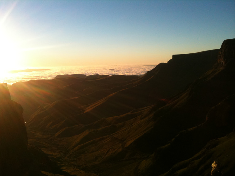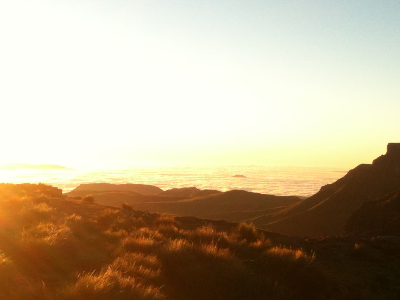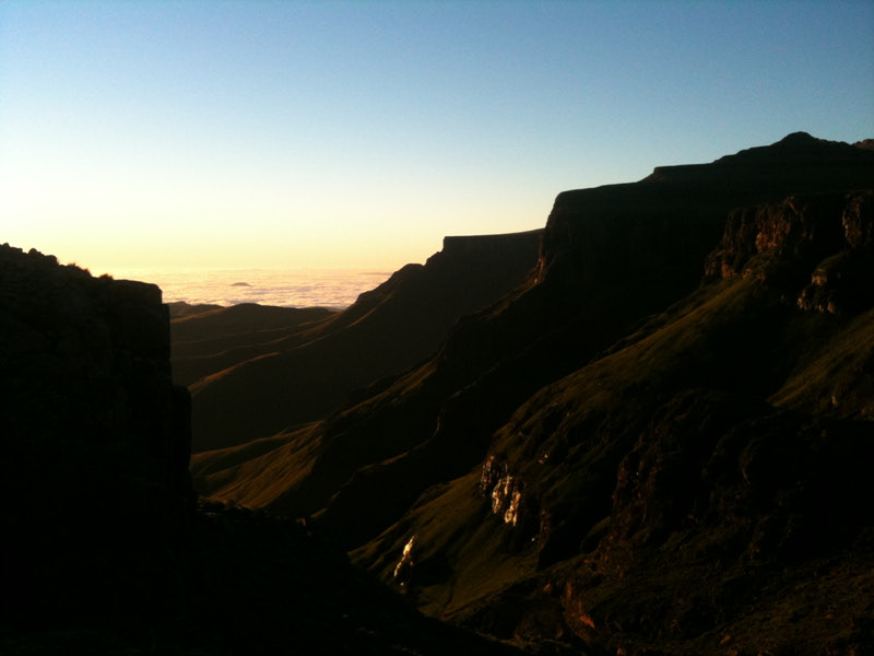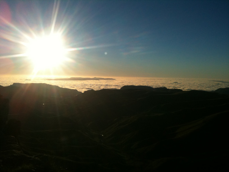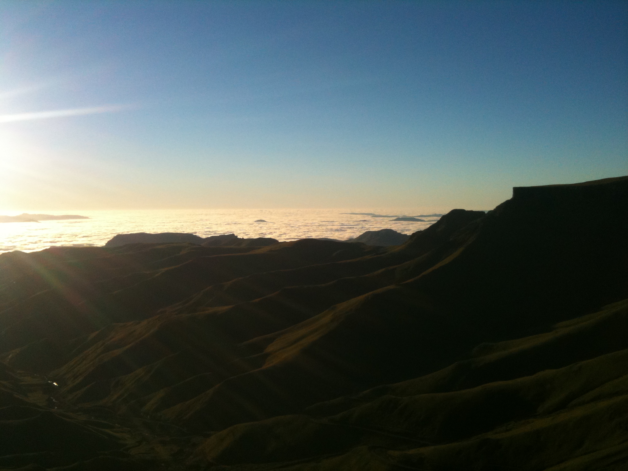 일출 시간에 일어나려고 시계를 맞춰 놓았는데 그럴 필요가 없었다. 워낙 닭님들이 시끄럽게 울어대는 통에 자연스럽게 오전 5시 30분에 일어났다. 일어나자마 사니톱 샬레(Sani Top Chalet)로 급히 가서 쭉 이어지는 절벽으로 향했다. 절벽에 도착하자 이미 해는 떠오르고 있었고 압도적인 장관이 펼쳐진다. 레소토 지역은 절벽이 이어지고 있는 가운데 고도가 낮은 남아공 지역은 구름으로 바다를 이루고 있다. 워낙 높은 지대라 구름도 이곳을 감싸지 못한 것이다. 구름바다 종종이 산봉우리가 불쑥 나와 있는데 그 모습이 바다위의 섬을 연상케 한다. 그 가운데 해가 서서히 떠오르고 있다. 절벽 아래로는 어제 쭉 올라왔던 Sani 패스가 쭉 이어진 모습이다. 절벽을 쭉 따라가니 할아버지 한 분이 이미 나와 일출을 보고 계셨다. 할아버지에게 ‘Very Beautiful!'이라고 한마디 하니 고개를 끄떡거리신다. 지금 이 광경을 설명할 수 있는 유일한 말이기에 다른 말이 떠오르지 않는다. 사진을 찍고 감상을 한 후 다시 숙소로 돌아왔다. 사니패스의 일출을 보았으니 서둘러 레소토 안으로 떠나야 한다. 사니톱 샬레로 돌아와 레소토의 수도인 마세루까지 가는 방법을 물어보니 정오 전에는 대중교통이 없다고 말한다. 이곳에서 마세루까지는 300km가 넘는 거리이다. 오늘 안으로 마세루까지 가기 위해서는 히치를 해서 가야 한다. 도미토리에서 짐을 챙겨 나올 때 숙소에 묵은 백인에게 작별을 하니 혹시 오늘 차를 찾지 못하면 내일 같이 레소토 안으로 들어가자고 말한다. 오늘 서둘러 들어가는 것으로 결정했기 때문에 고마운 마음만 받았다. 차량이 지나가는 국경사무소에서 기다림이 시작되었다.(오전 8시) 잠시 기다리니 일출을 함께 감상한 노부부가 차를 몰고 나왔는데, 안타깝게도 남아공 쪽으로 내려가신다고 한다. 작별 인사를 하고 계속 차를 기다렸다. 기다림은 계속 되겠지만 정오에는 미니버스가 도착할 것임으로 큰 걱정은 되지 않았다. 문을 연 작은 가게에서 우유와 튀긴 빵 5개를 사 길가에 앉은 채로 아침 식사를 하고 있을 때 차량이 한대 지나간다. 세워서 어느 방향으로 가는지 물어보니 Mokhotlong으로 간다고 말한다. 아싸~ 내가 가려고 했던 곳이다. 운전자에게 같이 갈 수 있는지 물어보니 잠깐 기다리라며 차에서 내려 뒷칸을 정리한다. 뒷 칸에는 유아용 시트에 어린아이 2명이 타고 있어 내가 탈 수 있도록 시트 위치를 조정했다. 이들은 남아공 가족으로 가족 간의 대화가 영어인 것으로 보아 영국계임을 알 수 있다. 앞좌석에는 부부가 타고, 뒷좌석에는 1살 된 아기와 3살 된 여자 아이가 타고 있으며 강아지 한 마리가 타고 있다. 애꿎은 강아지는 나의 등장으로 뒷좌석을 양보해야 하기에 앞좌석 중간부분으로 밀려났다. 강아지에게 미안하다. 사니패스에서 출발해 험한 산악 도로가 이어진다. 티벳 고원과 비슷한 풍경이다. 간혹 경사가 심해 차량이 지나 가기 힘든 구간이 보이기도 하지만 4륜 구동이라 천천히 속도를 줄여 올라간다. 나의 시선은 장엄한 주변 풍경보다 차 안에 쏠렸다. 이 험한 도로에 차가 크게 흔들려 내 머리가 차 천장에 부딪칠 정도인데도 두 아이는 아무 일 없다는 듯 새근새근 잠들어 있다. 아이 엄마 이름은 치나이고, 딸은 엔젤이다. 치나는 남편과 연애시절부터 여행을 많이 다녔다면서 지금도 주말을 이용해 여행을 많이 다닌다고 한다. 아이들은 여행에 익숙해서 이정도 도로에 적응했다고 이야기 한다. 그때 아이들이 일어나 칭얼대기 시작했는데 치나는 어제 먹은 과자를 아이에게 던지니 아이들은 과자를 집고는 조용히 먹는다. 참 대단한 가족이다. 큰 고개를 넘자 고원 절경이 펼쳐지고 폭포, 계곡, 초원이 이어진다. 차량에 좁게 타서 그런지 사진을 못 찍어 아쉬웠다. 내가 사진을 꺼내면 차량을 멈춰 줘 사진을 찍게 했기 때문에 오히려 사진 찍기가 부담스러웠다. 풍경은 동티벳을 여행했을 때의 풍경과 흡사하다. Mokhotlong에는 11시경에 도착했다. 이곳까지 태워준 가족들에게 감사 인사를 하고 마세루로 가는 차편을 물어보니 이곳에서 마세루까지 직접 가는 차량은 없고 레소토 북쪽의 부타부테(Butha-Buthe)까지 가서 그곳에서 한번 갈아타야 한다. 1시간 정도 기다린 12시가 지나자 출발한다.(R80) 차량은 산악 지역을 헤쳐 나가고 있으며 차창 밖으로는 산악 지역의 장엄함이 펼쳐진다. 도로는 아스팔트로 포장이 되어 있으나 상태가 좋지 않아 제 속도를 내지는 못한다. 차량은 중간 중간에 손님들을 태우기 위해 잠시 정차하는데 그때 먹거리를 사거나 용변을 볼 수 있다. 오후 3시에 Moteng 패스에 도착했다. 높은 고개라 주변 풍광이 한눈에 보인다. 마침 View Point가 있어 좋은 자리에서 사진을 찍을 수 있었다. 50분을 더 달려 바타부테에 도착했다. 이곳에 도착하자 본격적인 도시 환경이 펼쳐진다. 레소토에서도 번화한 이곳에는 유명 패스트푸드점도 보인다. 바타부테 정류장에 내리자마자 운전사는 다른 차량으로 안내를 한다. 곧장 마세루까지 가는 버스이다. 늦게 도착하기는 하겠지만 오늘 안에 마세루에 도착하는 것은 분명해져서 안심이 되었다.(마세루까지 R50) 이곳은 레소