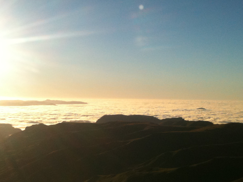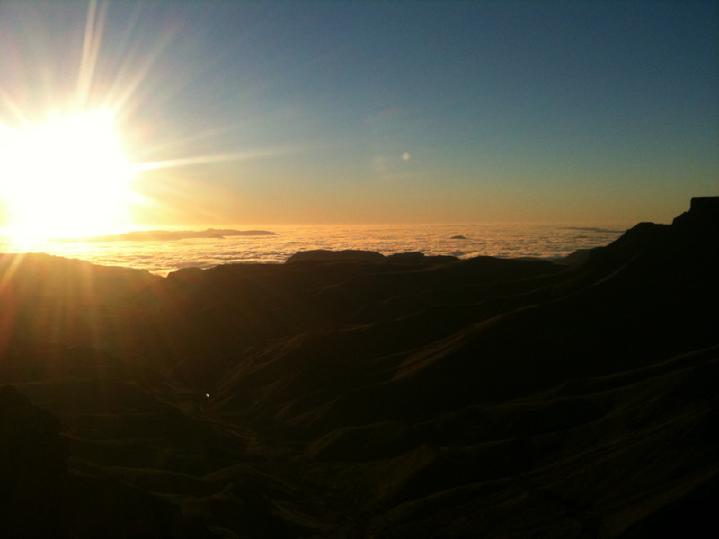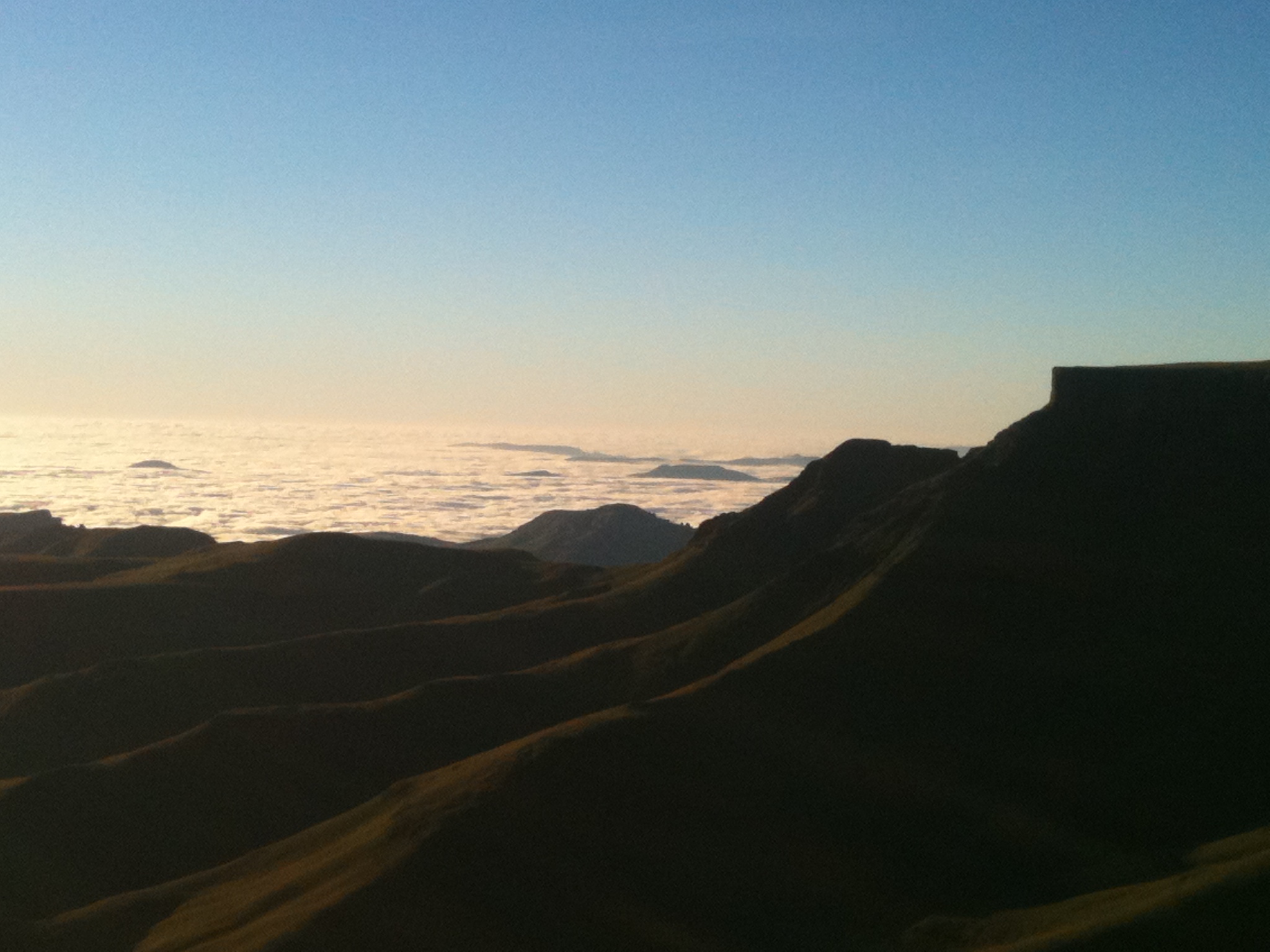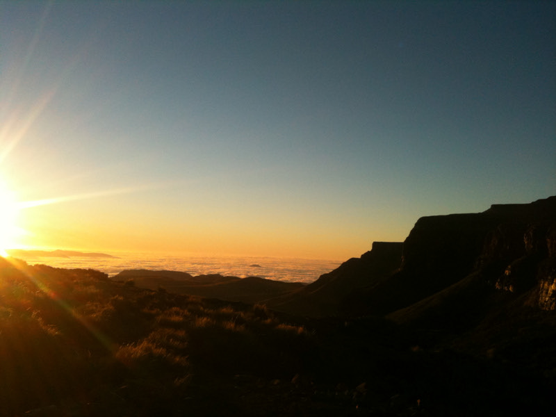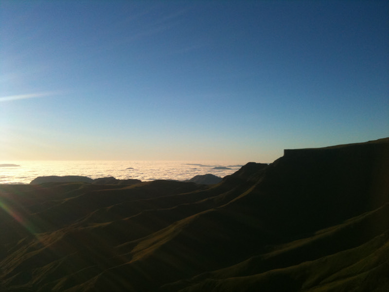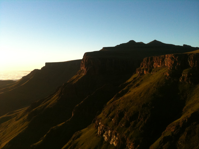 일출 시간에 일어나려고 시계를 맞춰 놓았는데 그럴 필요가 없었다. 워낙 닭님들이 시끄럽게 울어대는 통에 자연스럽게 오전 5시 30분에 일어났다. 일어나자마 사니톱 샬레(Sani Top Chalet)로 급히 가서 쭉 이어지는 절벽으로 향했다. 절벽에 도착하자 이미 해는 떠오르고 있었고 압도적인 장관이 펼쳐진다. 레소토 지역은 절벽이 이어지고 있는 가운데 고도가 낮은 남아공 지역은 구름으로 바다를 이루고 있다. 워낙 높은 지대라 구름도 이곳을 감싸지 못한 것이다. 구름바다 종종이 산봉우리가 불쑥 나와 있는데 그 모습이 바다위의 섬을 연상케 한다. 그 가운데 해가 서서히 떠오르고 있다. 절벽 아래로는 어제 쭉 올라왔던 Sani 패스가 쭉 이어진 모습이다. 절벽을 쭉 따라가니 할아버지 한 분이 이미 나와 일출을 보고 계셨다. 할아버지에게 ‘Very Beautiful!'이라고 한마디 하니 고개를 끄떡거리신다. 지금 이 광경을 설명할 수 있는 유일한 말이기에 다른 말이 떠오르지 않는다. 사진을 찍고 감상을 한 후 다시 숙소로 돌아왔다. 사니패스의 일출을 보았으니 서둘러 레소토 안으로 떠나야 한다. 사니톱 샬레로 돌아와 레소토의 수도인 마세루까지 가는 방법을 물어보니 정오 전에는 대중교통이 없다고 말한다. 이곳에서 마세루까지는 300km가 넘는 거리이다. 오늘 안으로 마세루까지 가기 위해서는 히치를 해서 가야 한다. 도미토리에서 짐을 챙겨 나올 때 숙소에 묵은 백인에게 작별을 하니 혹시 오늘 차를 찾지 못하면 내일 같이 레소토 안으로 들어가자고 말한다. 오늘 서둘러 들어가는 것으로 결정했기 때문에 고마운 마음만 받았다. 차량이 지나가는 국경사무소에서 기다림이 시작되었다.(오전 8시) 잠시 기다리니 일출을 함께 감상한 노부부가 차를 몰고 나왔는데, 안타깝게도 남아공 쪽으로 내려가신다고 한다. 작별 인사를 하고 계속 차를 기다렸다. 기다림은 계속 되겠지만 정오에는 미니버스가 도착할 것임으로 큰 걱정은 되지 않았다. 문을 연 작은 가게에서 우유와 튀긴 빵 5개를 사 길가에 앉은 채로 아침 식사를 하고 있을 때 차량이 한대 지나간다. 세워서 어느 방향으로 가는지 물어보니 Mokhotlong으로 간다고 말한다. 아싸~ 내가 가려고 했던 곳이다. 운전자에게 같이 갈 수 있는지 물어보니 잠깐 기다리라며 차에서 내려 뒷칸을 정리한다. 뒷 칸에는 유아용 시트에 어린아이 2명이 타고 있어 내가 탈 수 있도록 시트 위치를 조정했다. 이들은 남아공 가족으로 가족 간의 대화가 영어인 것으로 보아 영국계임을 알 수 있다. 앞좌석에는 부부가 타고, 뒷좌석에는 1살 된 아기와 3살 된 여자 아이가 타고 있으며 강아지 한 마리가 타고 있다. 애꿎은 강아지는 나의 등장으로 뒷좌석을 양보해야 하기에 앞좌석 중간부분으로 밀려났다. 강아지에게 미안하다. 사니패스에서 출발해 험한 산악 도로가 이어진다. 티벳 고원과 비슷한 풍경이다. 간혹 경사가 심해 차량이 지나 가기 힘든 구간이 보이기도 하지만 4륜 구동이라 천천히 속도를 줄여 올라간다. 나의 시선은 장엄한 주변 풍경보다 차 안에 쏠렸다. 이 험한 도로에 차가 크게 흔들려 내 머리가 차 천장에 부딪칠 정도인데도 두 아이는 아무 일 없다는 듯 새근새근 잠들어 있다. 아이 엄마 이름은 치나이고, 딸은 엔젤이다. 치나는 남편과 연애시절부터 여행을 많이 다녔다면서 지금도 주말을 이용해 여행을 많이 다닌다고 한다. 아이들은 여행에 익숙해서 이정도 도로에 적응했다고 이야기 한다. 그때 아이들이 일어나 칭얼대기 시작했는데 치나는 어제 먹은 과자를 아이에게 던지니 아이들은 과자를 집고는 조용히 먹는다. 참 대단한 가족이다. 큰 고개를 넘자 고원 절경이 펼쳐지고 폭포, 계곡, 초원이 이어진다. 차량에 좁게 타서 그런지 사진을 못 찍어 아쉬웠다. 내가 사진을 꺼내면 차량을 멈춰 줘 사진을 찍게 했기 때문에 오히려 사진 찍기가 부담스러웠다. 풍경은 동티벳을 여행했을 때의 풍경과 흡사하다. Mokhotlong에는 11시경에 도착했다. 이곳까지 태워준 가족들에게 감사 인사를 하고 마세루로 가는 차편을 물어보니 이곳에서 마세루까지 직접 가는 차량은 없고 레소토 북쪽의 부타부테(Butha-Buthe)까지 가서 그곳에서 한번 갈아타야 한다. 1시간 정도 기다린 12시가 지나자 출발한다.(R80) 차량은 산악 지역을 헤쳐 나가고 있으며 차창 밖으로는 산악 지역의 장엄함이 펼쳐진다. 도로는 아스팔트로 포장이 되어 있으나 상태가 좋지 않아 제 속도를 내지는 못한다. 차량은 중간 중간에 손님들을 태우기 위해 잠시 정차하는데 그때 먹거리를 사거나 용변을 볼 수 있다. 오후 3시에 Moteng 패스에 도착했다. 높은 고개라 주변 풍광이 한눈에 보인다. 마침 View Point가 있어 좋은 자리에서 사진을 찍을 수 있었다. 50분을 더 달려 바타부테에 도착했다. 이곳에 도착하자 본격적인 도시 환경이 펼쳐진다. 레소토에서도 번화한 이곳에는 유명 패스트푸드점도 보인다. 바타부테 정류장에 내리자마자 운전사는 다른 차량으로 안내를 한다. 곧장 마세루까지 가는 버스이다. 늦게 도착하기는 하겠지만 오늘 안에 마세루에 도착하는 것은 분명해져서 안심이 되었다.(마세루까지 R50) 이곳은 레소