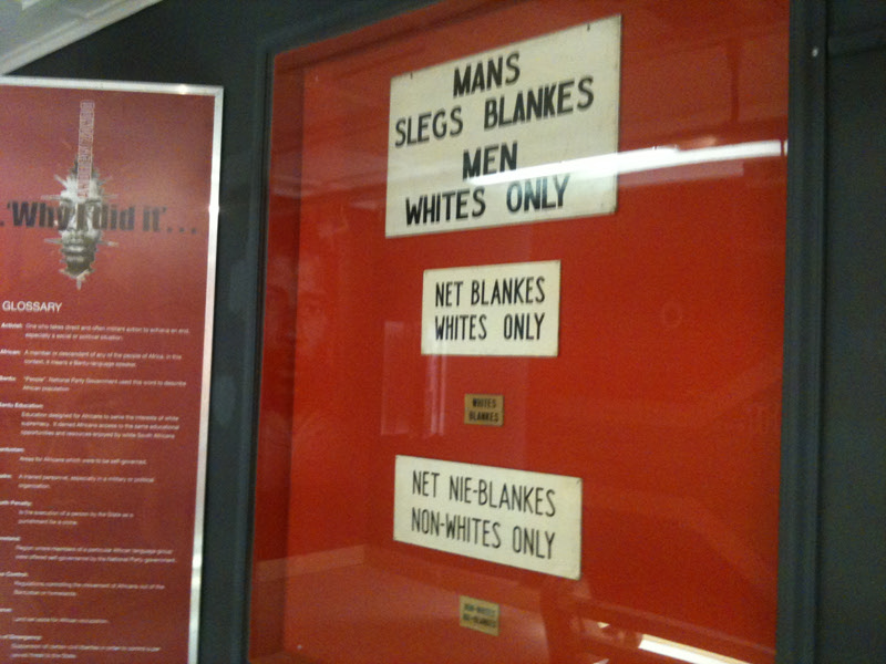 박물관에는 격리 된 흑인들의 생활상에 대해 자세히 설명되어 있으며 실물 크기의 밀랍인형이 인상적이다. 아파르헤이트로 인종차별이 폐지된 반면 주변국의 흑인들의 유입이 많아져 실업문제가 사회적인 문제로 부상하였고, 남아공의 치안은 최악의 상태로 다다른다.