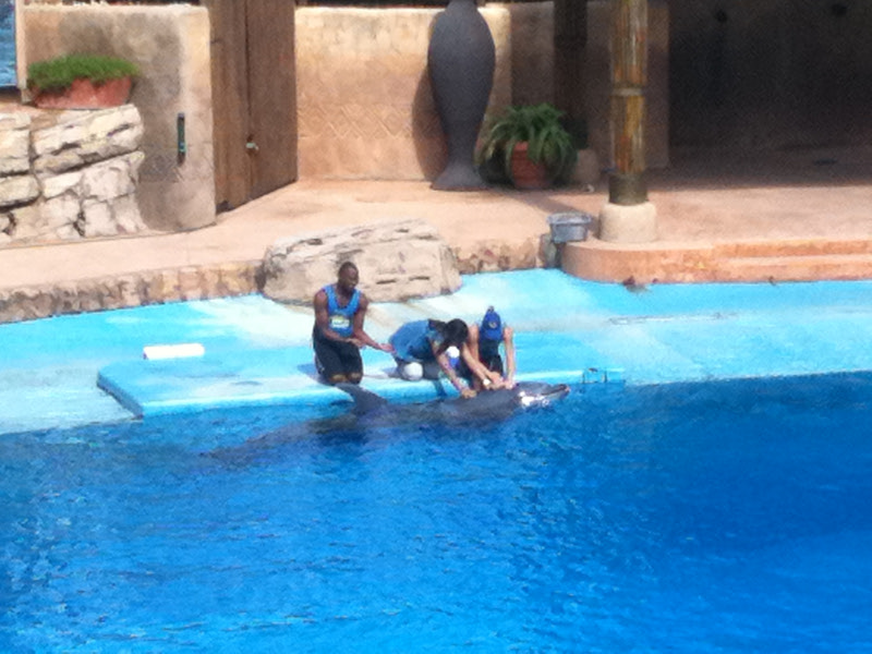 관객중에 한명은 돌고래를 만질 수 있다.(임신한 인도인 여성이 이 영광을 누린다.)