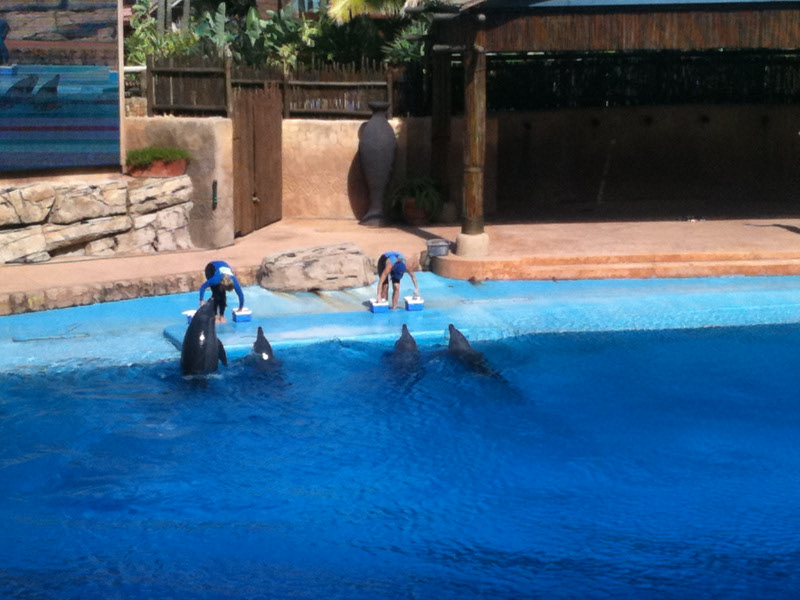 오후 3시에 상어 먹이를 주는 이벤트가 있어 상어 수족관으로 가니 철창을 타고 온 잠수부가 물고기를 직접 상어에게 먹이는 광경이 펼쳐진다. 4시에는 돌고래쇼를 볼 수 있었는데 세계적으로 유명한 돌고래쇼로 돌고래들의 각종 묘기는 물론 사육사와의 유대감이 강함을 볼 수 있었다. 돌고래쇼를 보면서 감탄을 연발했다.