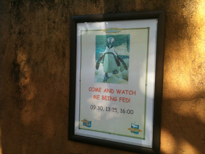 아쿠아리움은 분위기에 맞게 해양 생물을 잘 관람할 수 있게 잘 꾸며 놓았으며 아이들을 위한 간단한 교구도 구비했다. 해양 생물에 대한 전시 뿐만 아니라 해양 생태와 환경에 대한 교육도 아울러 하고 있는 것이 인상적이다. 펭귄 먹이 주는 이벤트가 있어 펭귄 사육장으로 가니 사육사가 펭귄에 대한 설명을 하고 있다. 펭권 사육장 안의 사육사가 체크리스트를 펼쳐 펭귄 번호를 체크하며 먹이를 주는 것이 인상적이다. 설명을 하는 사육사가 질문이 없는지 묻기에 손을 들어 펭귄이 얼마나 오래 사는지 물어보니 20살~25살까지 산다고 한다. 또 가장 나이 많은 펭귄을 물어보니 19살 된 암컷이 있다고 한다. 학생이 되어 영어로 질문을 해 본 경험을 했다.^^