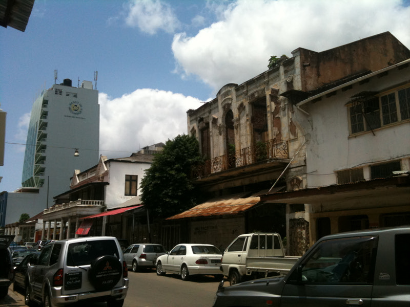 최신 건물 사이로 낡은 식민지 시대 건물 |