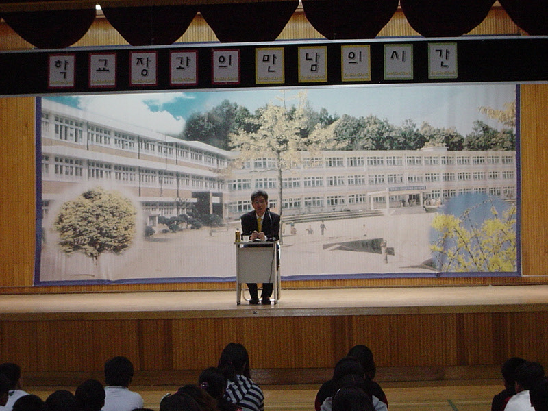 질문을 받는 교장선생님 |