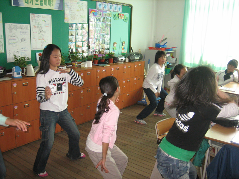 교실에서는 수학여행을 대비해 댄스 연습이 한창이다. |