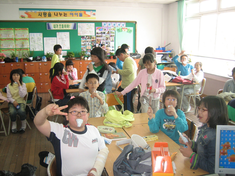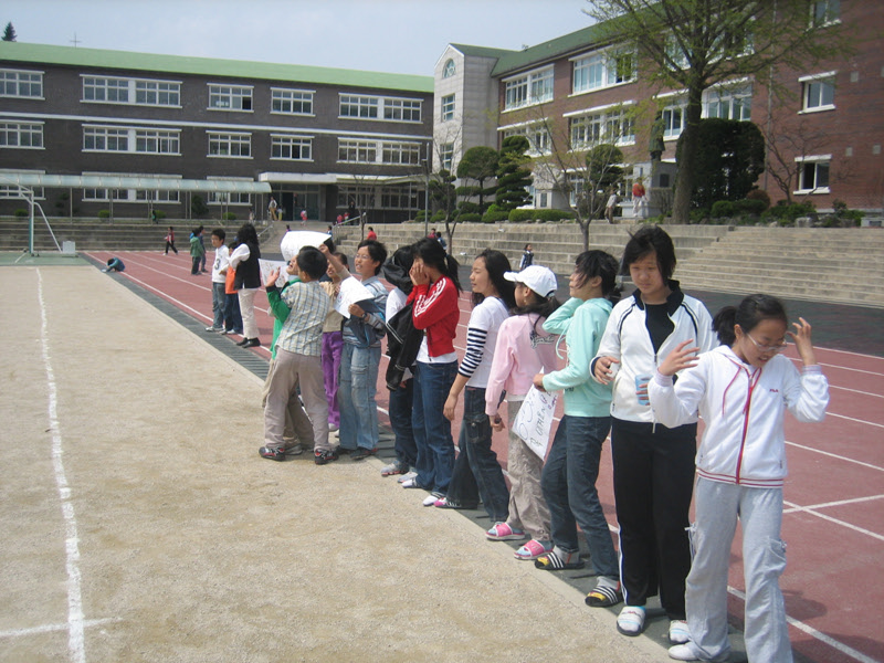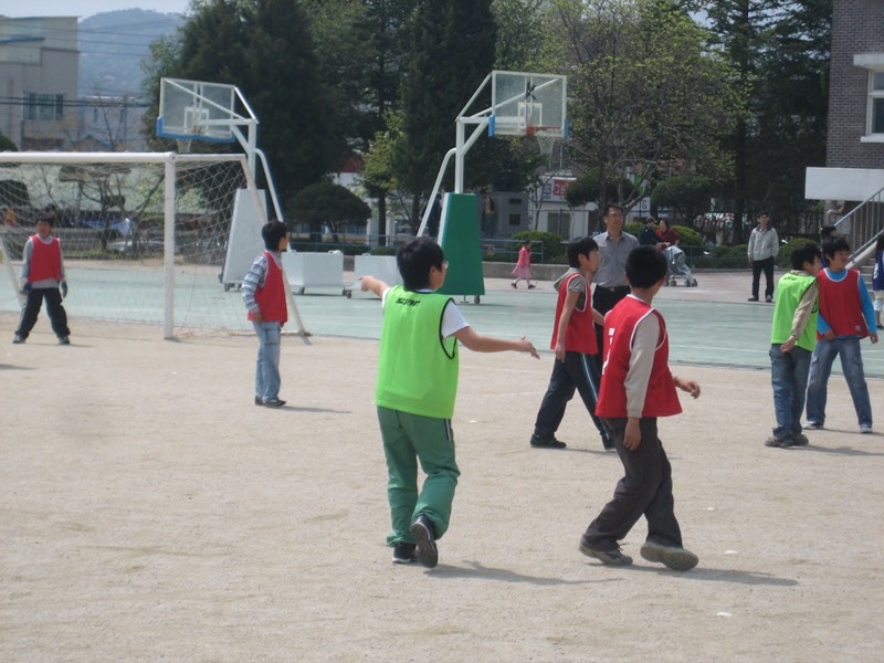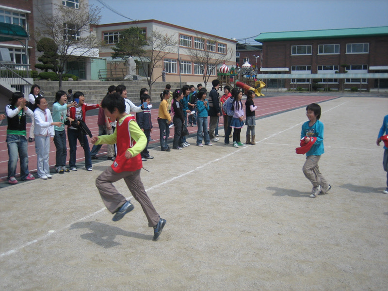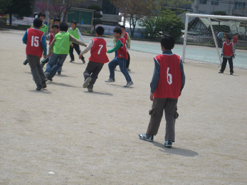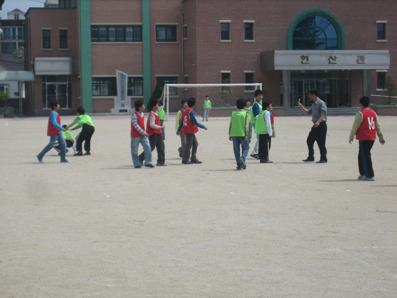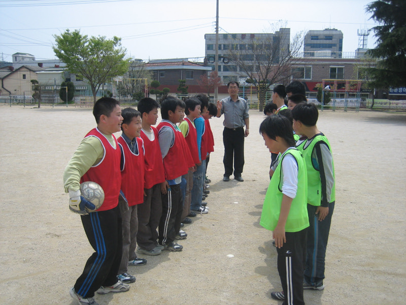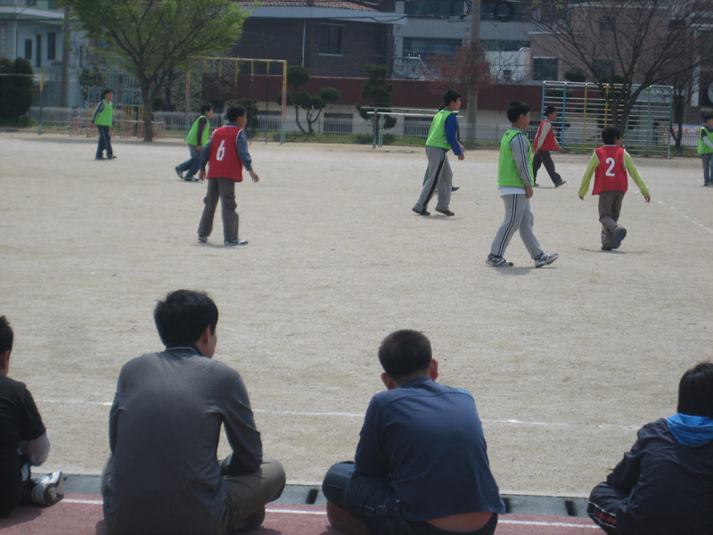어린이날 전날인 5월 4일에는 체육대회가 열린다. 가을 운동회와 달리 작은 규모로 열리는 이날은 각 학년별로 남자는 축구, 여자는 피구 결승 시합이 열린다. 이 날을 우리반의 잔치로 만들려면 축구, 피구 둘 중에 하나는 결승에 올라야 한다. 17일(화) 학년 회의 시간에 조추첨이 이루어졌다. 5개 반이기 때문에 두반이 먼저 한게임을 한 후 4강전을 치룬다. 다행히 우리반은 축구, 피구 모두 다 4강으로 직행했다. 피구와 같은 경우는 워낙 운동을 잘하는 여자애들이 우리반에 포진해있기 때문에 내심 우승을 노리고 있지만 축구와 같은 경우는 경우가 다르다. 작년에 맡았던 5학년 3반 남자애들은 2년 동안 한번도 패배하지 않았던 막강한 멤버들인데 이제는 모두 흩어져 상대편으로 만나야 하는 처지이다. 특히 옆반인 4반과 같은 경우는 축구를 잘하는 아이들이 몰린 반으로 대부분의 아이들이 우승후보로 꼽는 반이다. 최약체로 꼽히는 우리반이 4강전으로 4반을 만나게 된 것이다. 남자 아이들은 매일 축구공을 들고 연습을 나가지만 시합 전날에 4반과 평가전에 3:0으로 지는 모습을 보면서 승부에 연연하지 않기로 마음 먹었다. 시합이 벌어지는 토요일 아침 광영이가 무언가를 적은 쪽지를 소중히 품고 있다. 광영이에게 무엇인지 물어보니 어제 프랑스, 이탈리아 전술을 보면서 연구한 포지션이며 극비문서라고 이야기 한다. 분명한 열세임에도 불구하고 우리반 남자 아이들은 비오는 날 운동장으로 나가 축구 연습을 할 정도로 포기하지 않고 끝까지 노력하는 모습이 승패를 떠나서 자랑스럽게 느껴졌다. 1교시에는 1반과 피구시합이 있었는데 15분도 안되 세트스코어 2:0으로 이겼다. 반면 남자아이들은 1반과의 연습 시합에서 3:2로 졌다. 피구시합이 끝나고 교실에 들어오니 여자애들 밖에 없다. '남자 애들은 어디갔어?'라고 물으니 자기네들끼리 이야기를 하고 연습을 한다고 말한다. 열심히 하는 남자애들을 위해 여자애들에게는 응원준비를 하라고 말하니 각자 응원도구를 만든다. 3교시 4반과 축구시합이 시작되었을 때 난 '죽도록 뛰어서 후회하지 않도록 해'라는 한마디를 남겼다. 4반과 2반 피구시합 심판을 하느라 축구를 볼 수 없었지만 마음속으로는 응원을 하고 있었다. 전반전은 0:0으로 비겼다. 꽤 잘 싸우고 있다. 그런데 계속 밀리기만 했던 우리반이 후반전이 되면서 파상공세를 하기 시작하더니 2:0으로 앞선다. 포지션 전략이 꽤 잘 먹힌 모양이다. 4반의 공세는 계속되고 결국 2:2로 비긴 상태에서 승부차기가 시작되었다. 긴장되는 가운데 4반의 마지막 키커가 찬 공이 허공을 갈랐다. 결국 우리반 승!! 누구도 예상하지 못했던 결과이다. 결국 남자, 여자 모두 결승에 올라 5월 4일 체육대회가 우리반의 대회가 되었다. 물론 아이스크림을 아이들에게 돌렸다. 오늘은 아이들이 나에게 '무엇이든 포기하지 않으면 좋을 결과가 있다.'는 가르침을 준 날이다. 자 이제 작년처럼 남녀 동반 우승을 향해 나아가야겠다.
